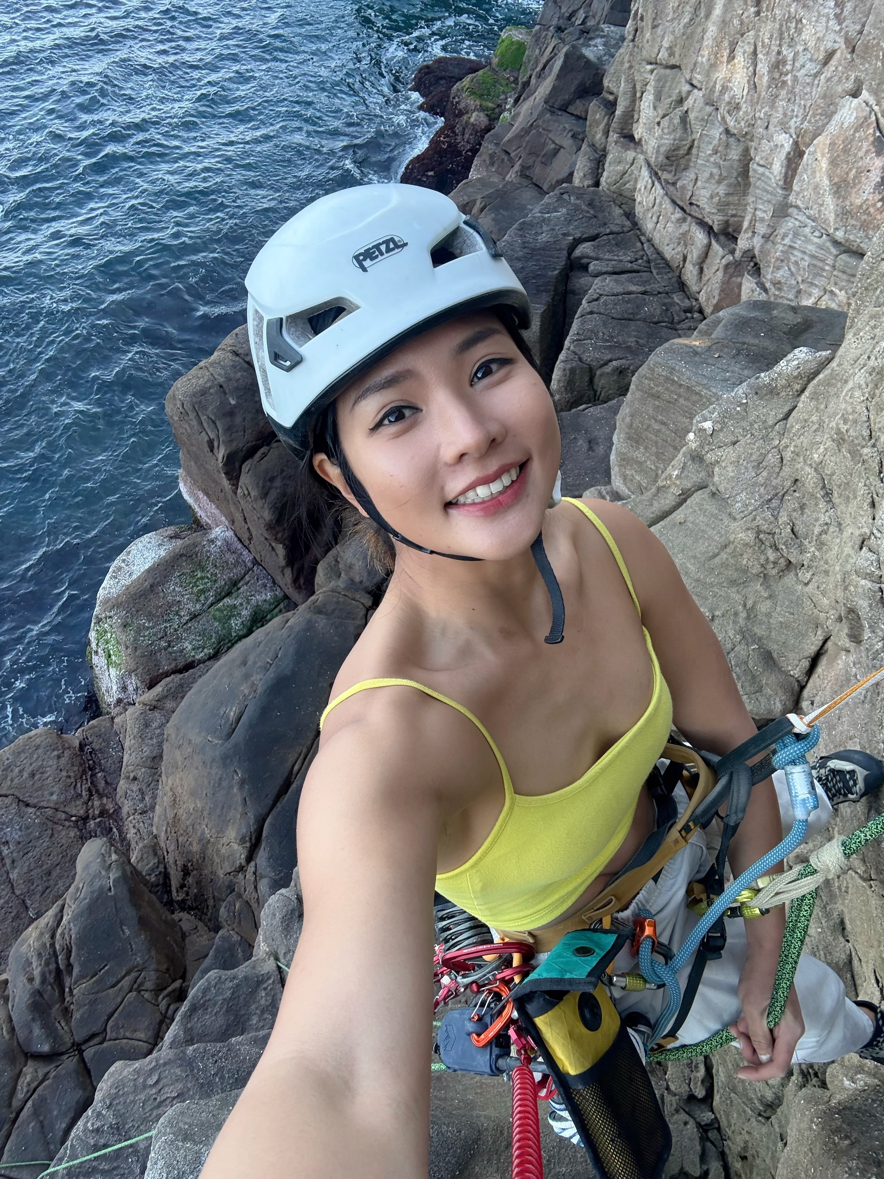目前最喜歡的是攀岩,第二名是衝浪,現在比較少爬山了,因為上山就不能攀岩也不能衝浪🤣