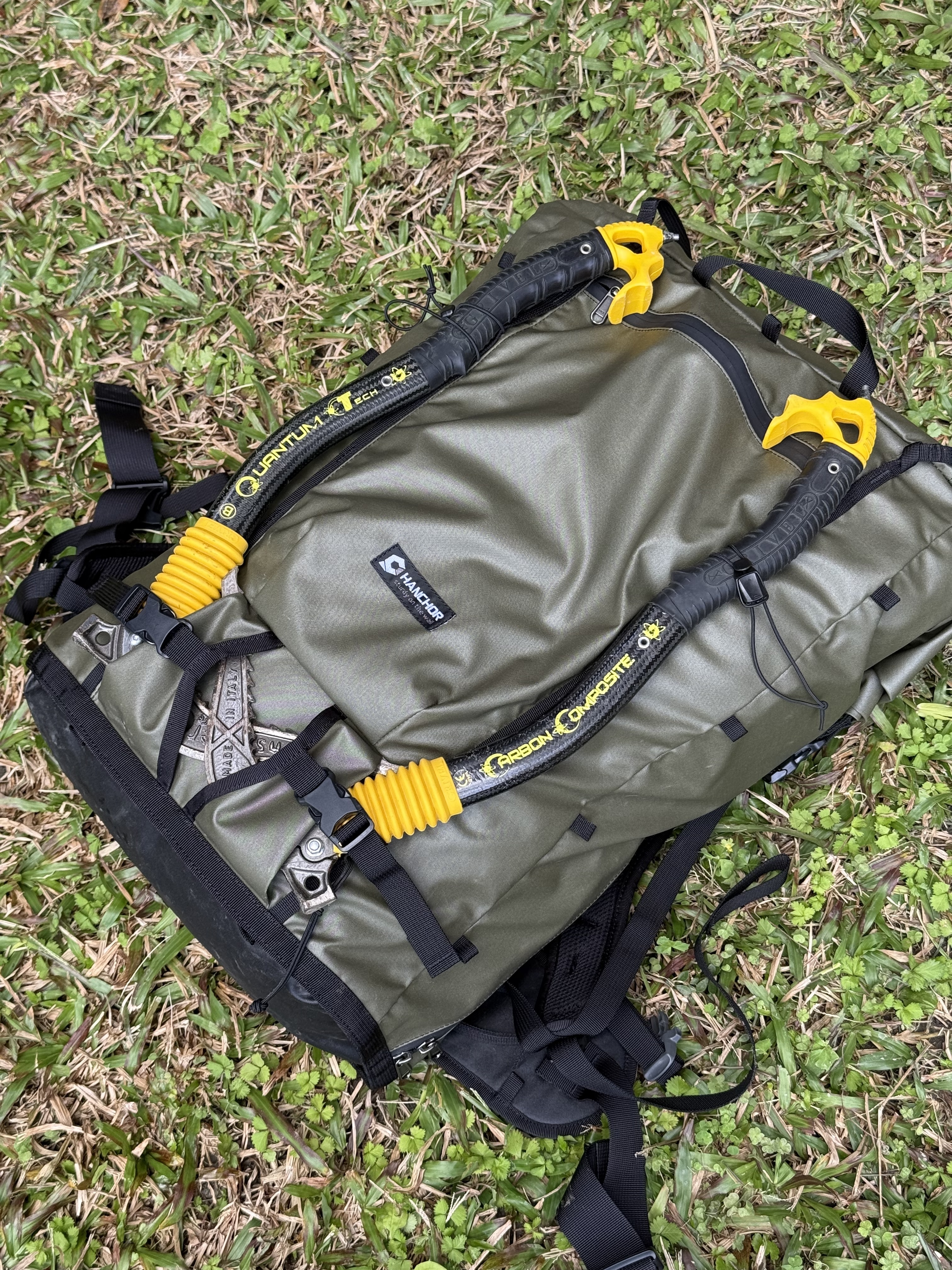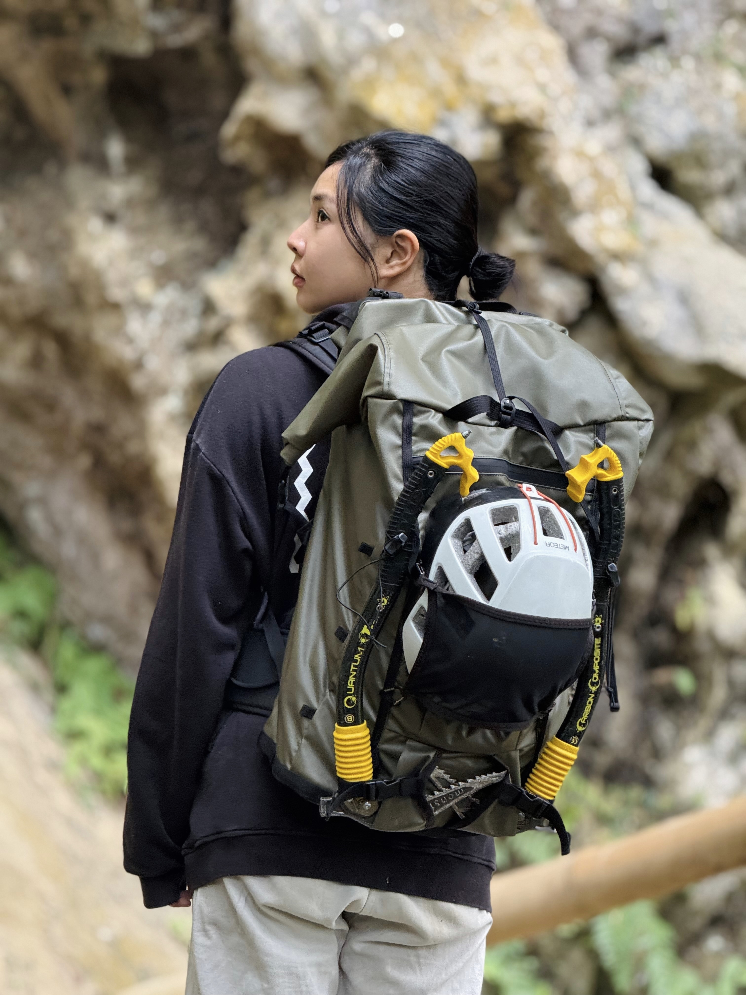 包體的材質是330D 防水Cordura,在我的hanchor包中是比較厚重一點的材質,但相對的在行程與岩石摩擦時,或是有臨時拖吊需求的話,這樣的耐用程度相當令人安心。