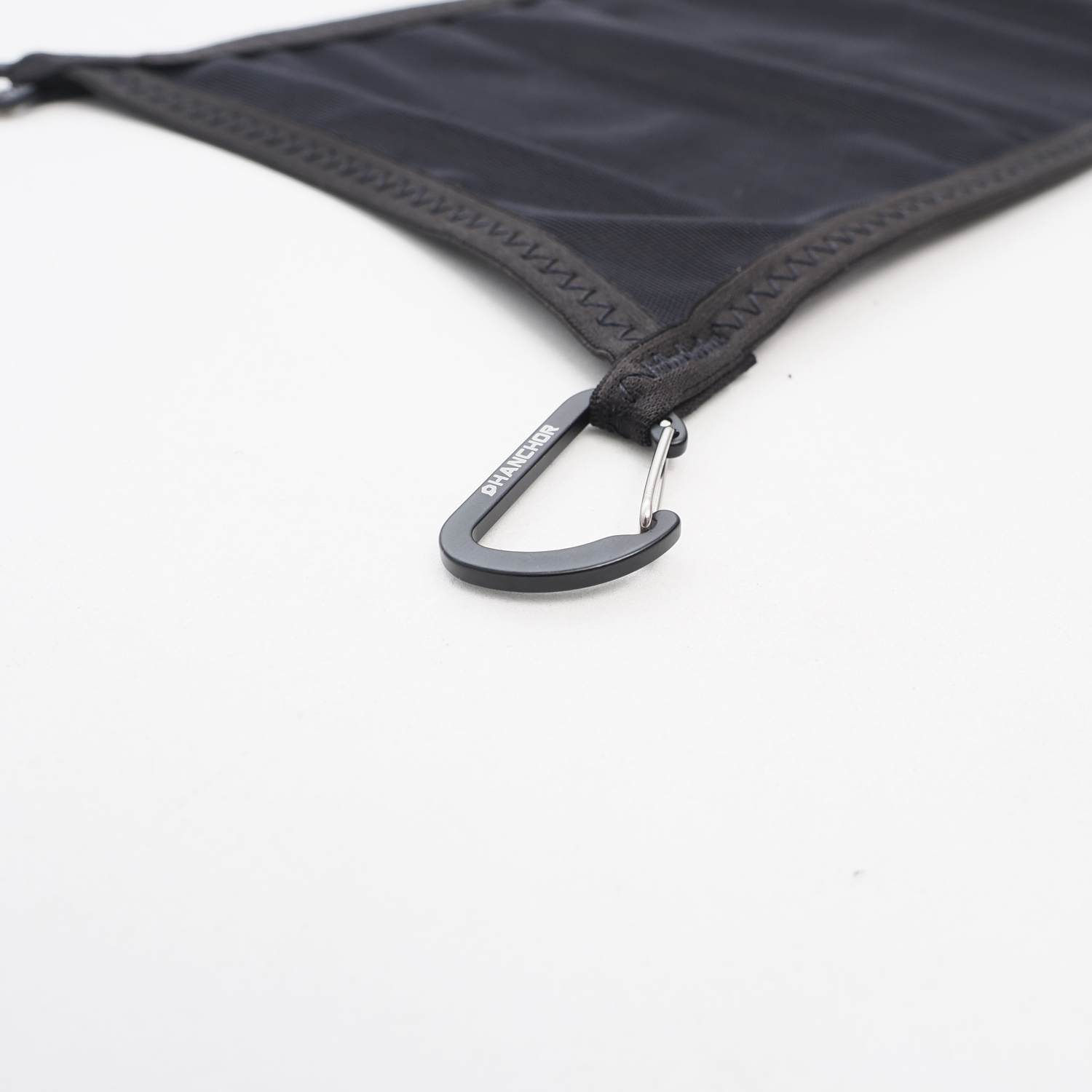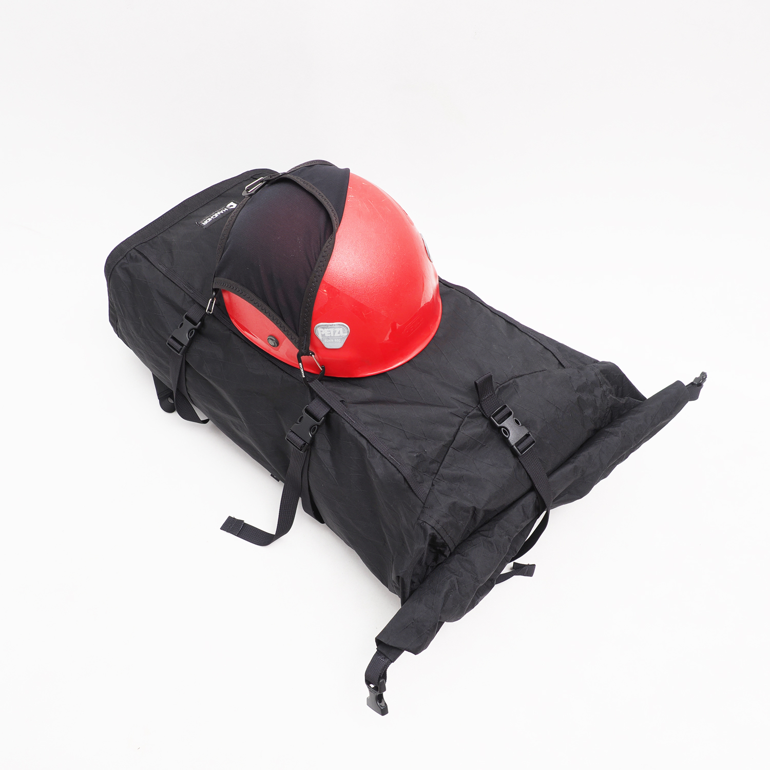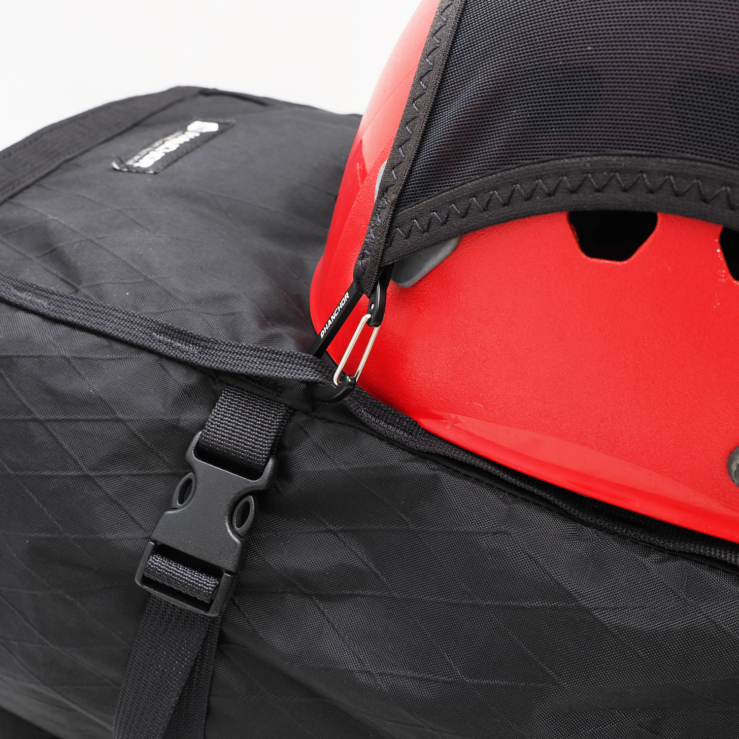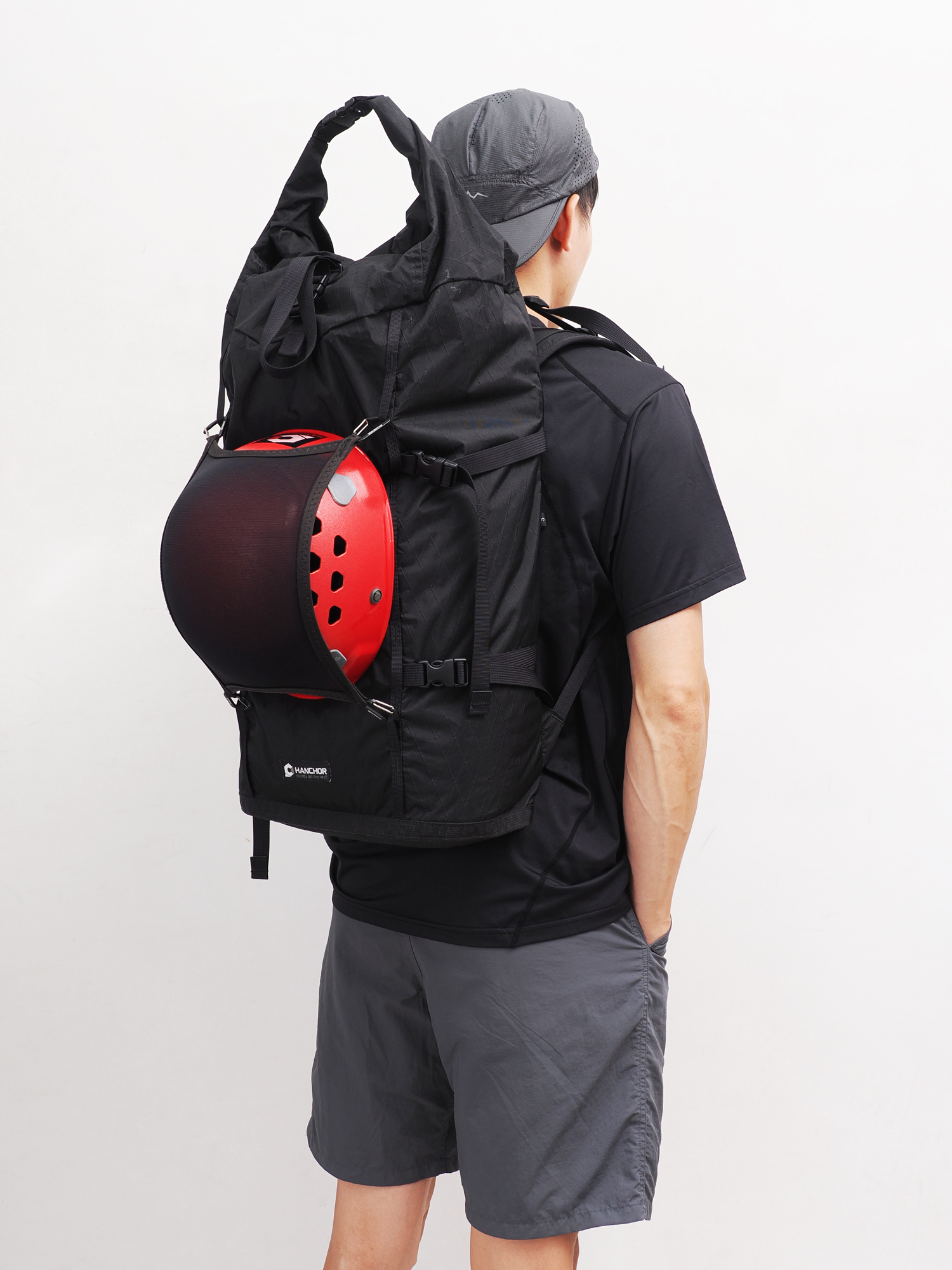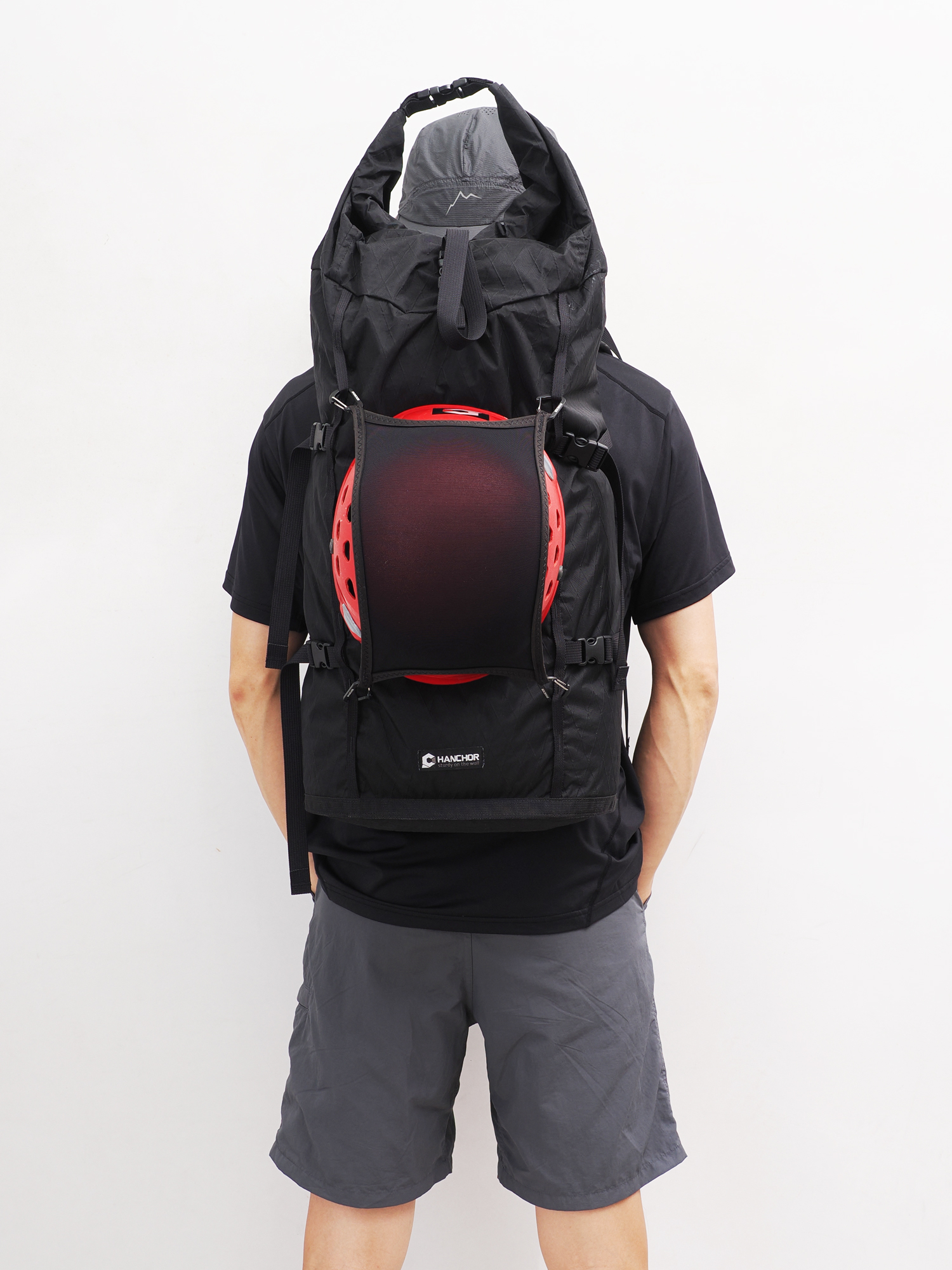 利用彈性網布搭配鋁合金四向勾環,能夠穩定外掛頭盔於背包上的輕量化配件。